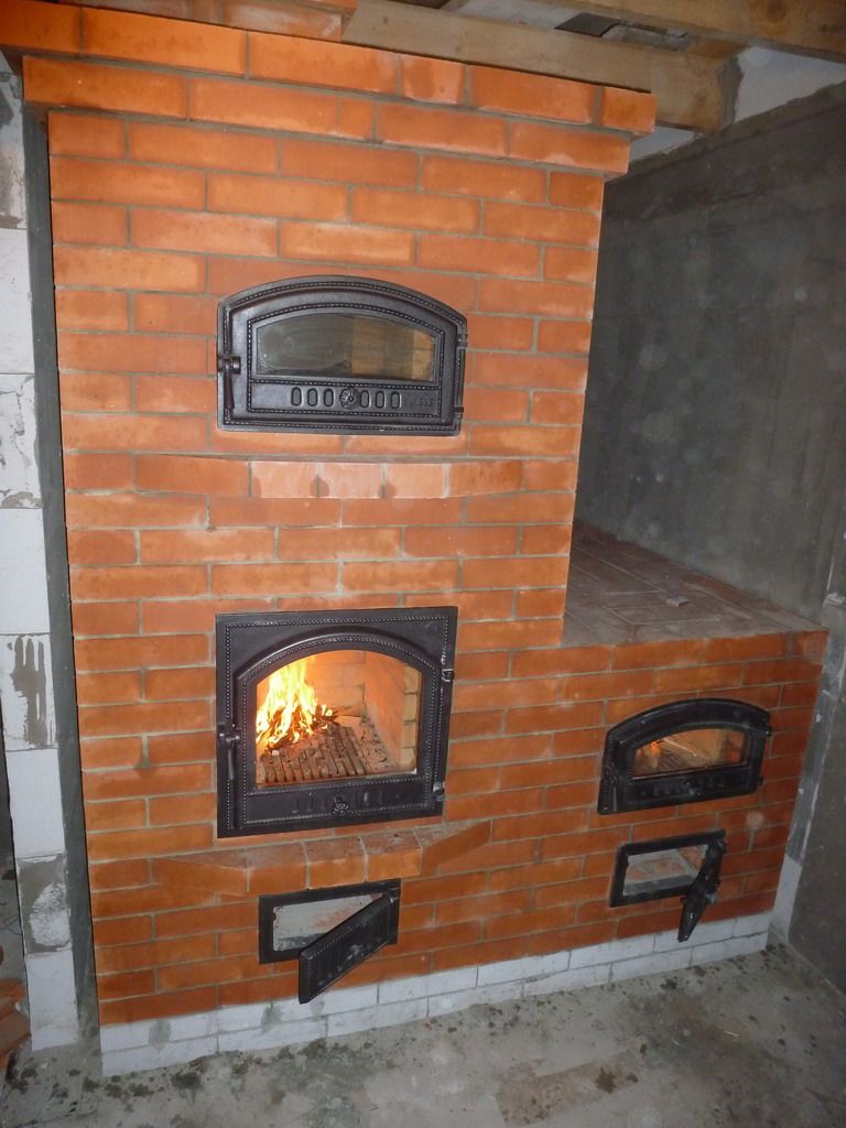 Одна из лучших печей. Заказчики данной конструкции всегда остаются довольны. Можно сидеть и любоваться огнем камина, приготовить пищу в духовом шкафу, а так же обогреть дом.