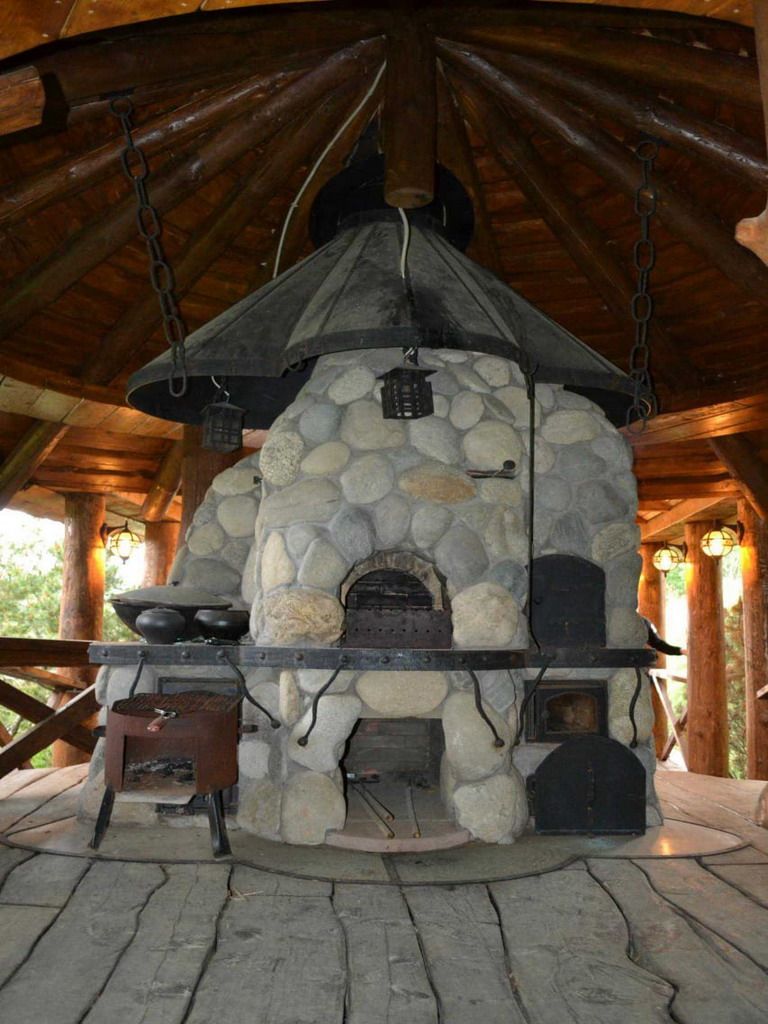 Данная конструкция устанавливается исключительно под крышей беседки. Мангал может быть совмещен с отопительно печкой «голландкой», со столешницей. Используется преимущественно для приготовления шашлыка, птицы и другой пищи в уютных условиях.