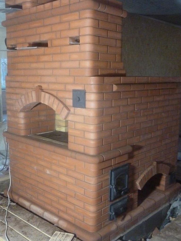 Печь "Шведка" монтируется в любом загородном доме на первом этаже. Используется одновременно для отопления и приготовления пищи. Передним фронтом она должна быть на кухне, а задняя часть может обогреть одну или две комнаты находящихся сзади.